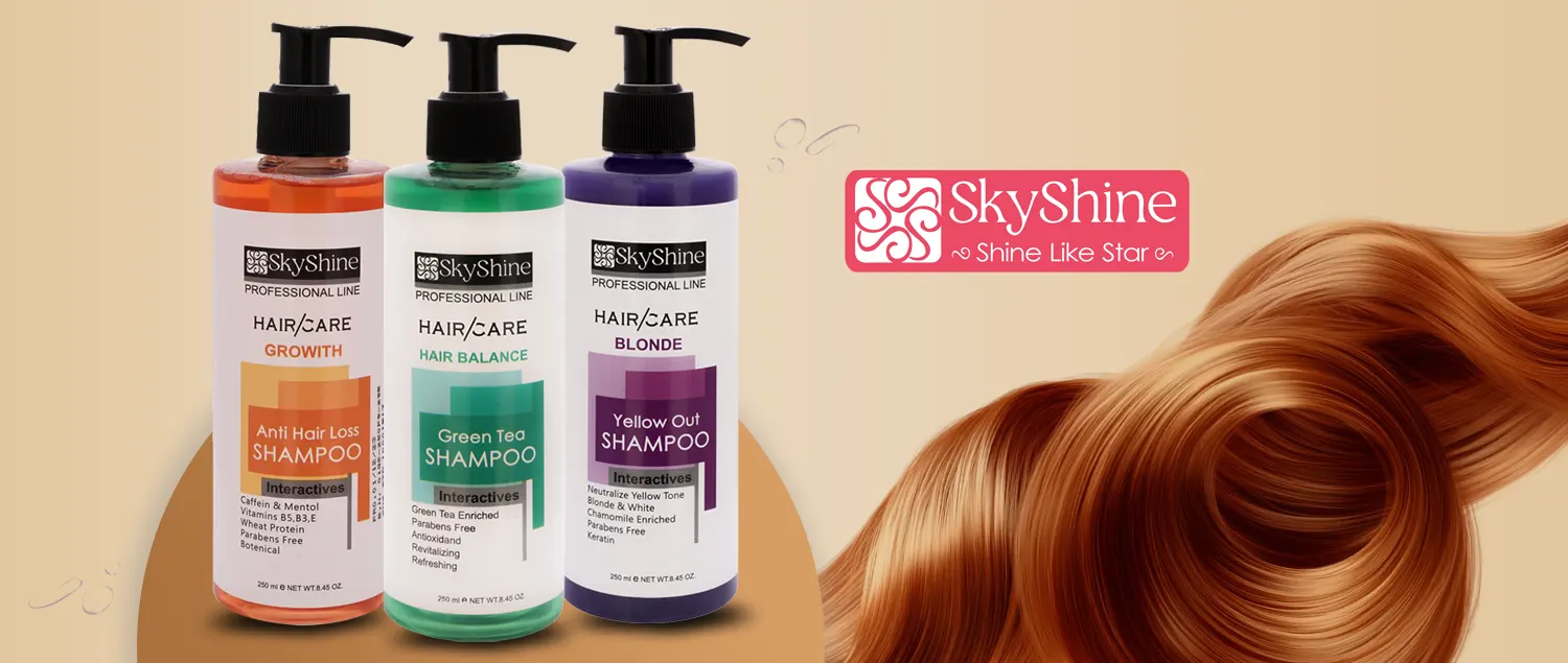 اسکای شاین برند نو و باکیفیت ایرانی در عرصه تولید محصولات بهداشتی مانند شامپو، ماسک مو و اسپریهای مراقبت مو است که فرمولاسیون و مواد اولیه محصولات آن تحت لیسانس VMV Group اسپانیا میباشد. در تولید این محصولات تلاش شده است که کاملا متناسب با پوست و موی سر بوده و موقعیت آب و هوایی، همچنین عادتهای مراقبت از مو رعایت شود.