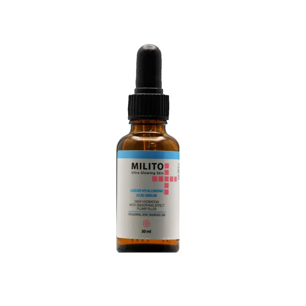 سرم آبرسان میلیتو حاوی هیالورونیک اسید جهت آبرسانی عمیق و بازگرداندن رطوبت از دست رفته پوست میباشد. این سرم برای انواع پوست از جمله خشک، نرمال، مختلط و چرب مناسب